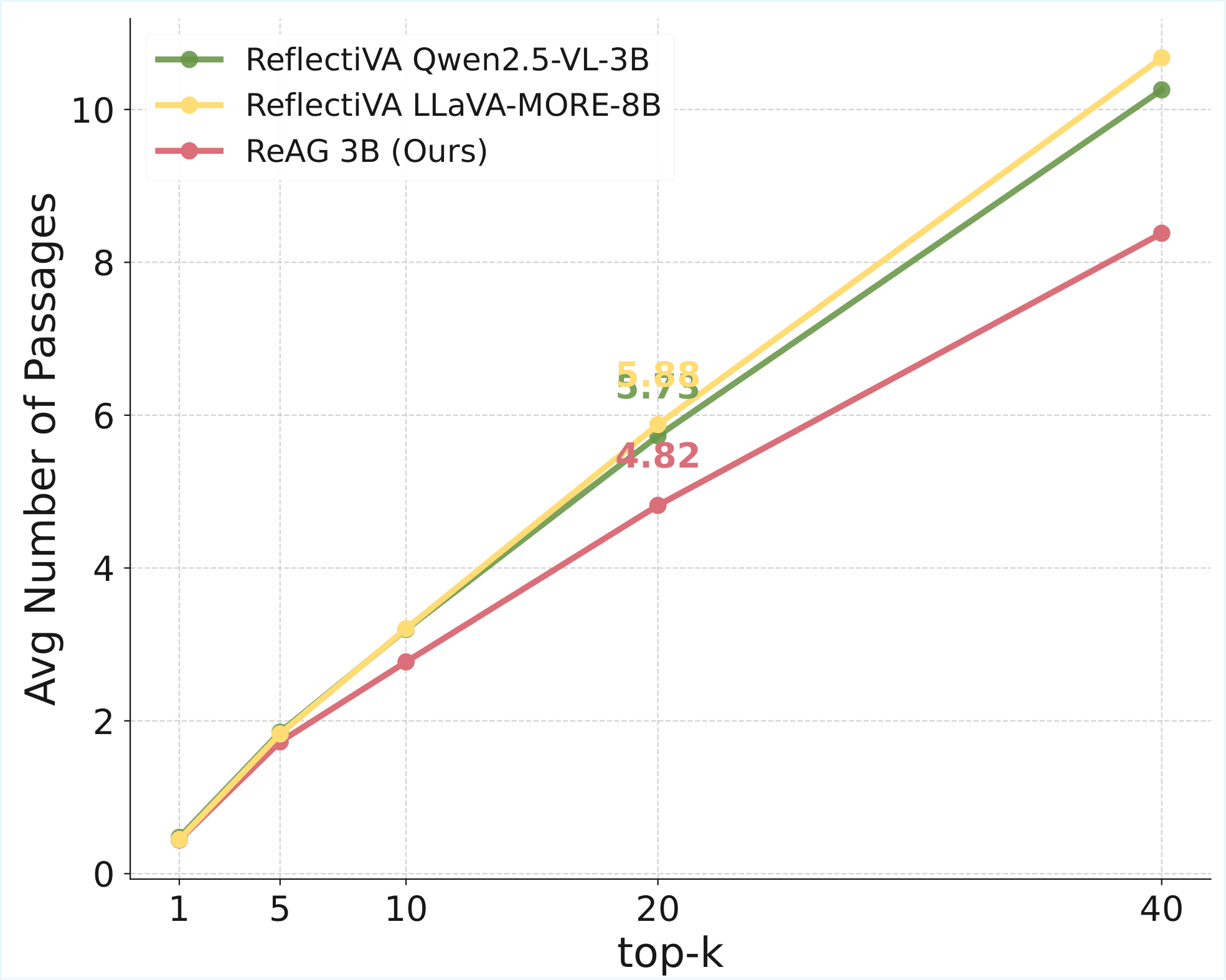 | ReAG (Ours) | Qwen2.5-VL-3B | 41.3 +7.6 | 42.9 +7.7 | 43.7 +4.0 | 42.9 +4.1 | 43.3 +4.3 |